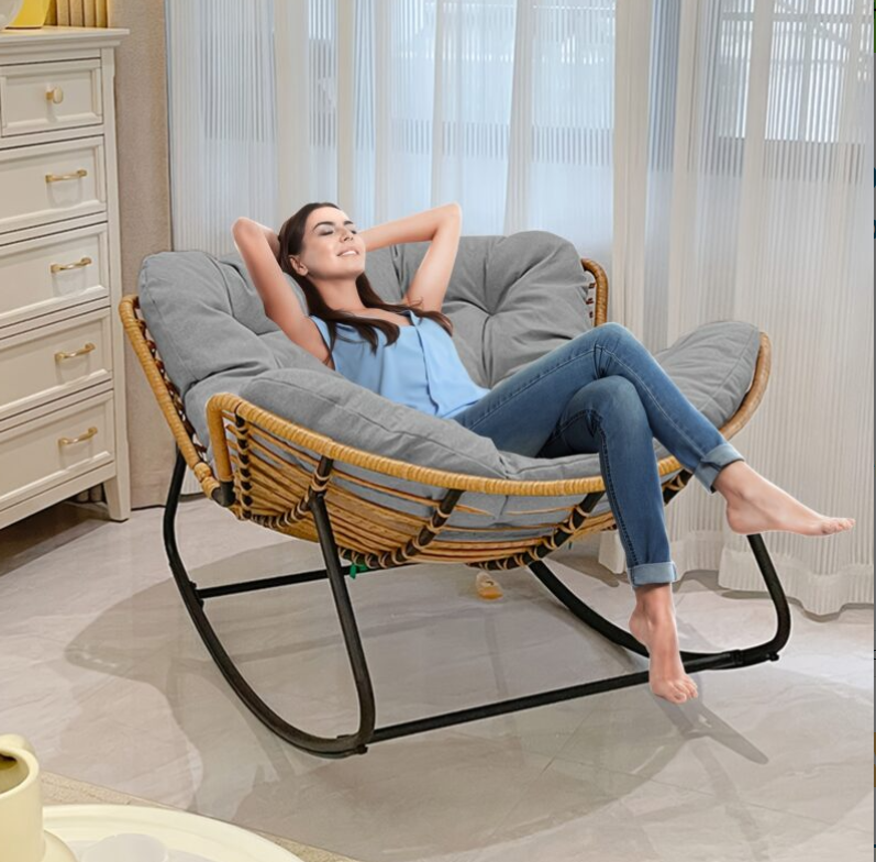 Това люлеещо се кресло ще се превърне в любимото ти място за релакс – стилно, удобно и създадено за моменти на пълно удоволствие.