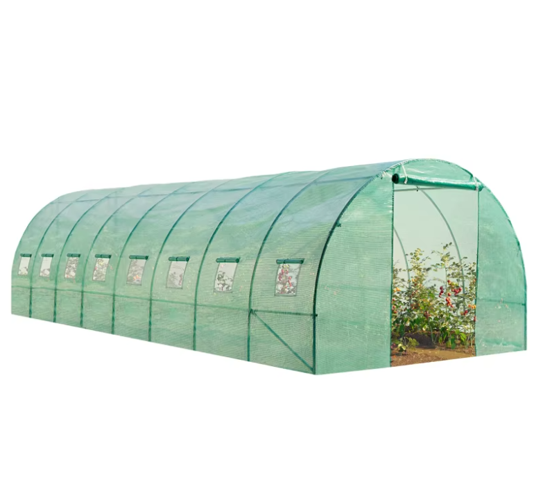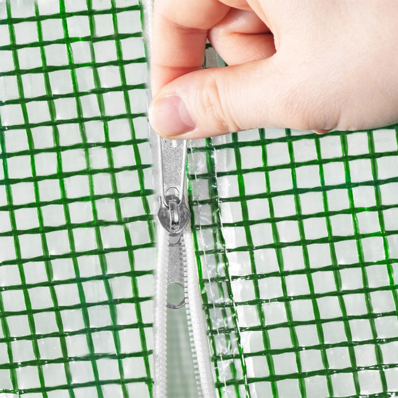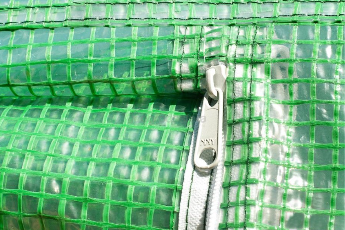 Платнището от армиран найлон / фолио за оранжерия е предназначено да предпазва нежните растения от вятър, проливен дъжд или градушка, както и от щети от вредители или птици. Платнището е с 16 бр.прозорци има 2 врати за лесен достъп и идеално проветряване, затворени с двустранен цип, който може да се навие на руло и да се държи отворена с каишки с катарами.