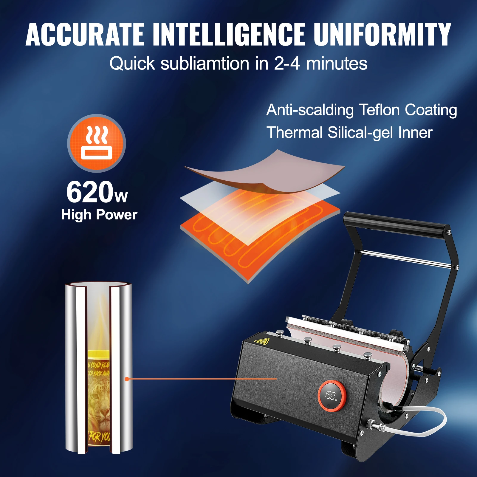 - Надеждни сублимационни трансфери: Нашият нагревателен елемент с мощност 620 W, изработен от силиконов гел и желязо, осигурява по-бърза скорост на нагряване и по-добър ефект на трансфер. Мека нагревателна облицовка от силиконов гел се използва за обвиване на чашите и намалява неприятните миризми. Идеален за чаши, изработени от керамика, неръждаема стомана, стъкло и др. Времеви диапазон: 0-999 сек. Температурен диапазон: 0-410°F / 210°C.