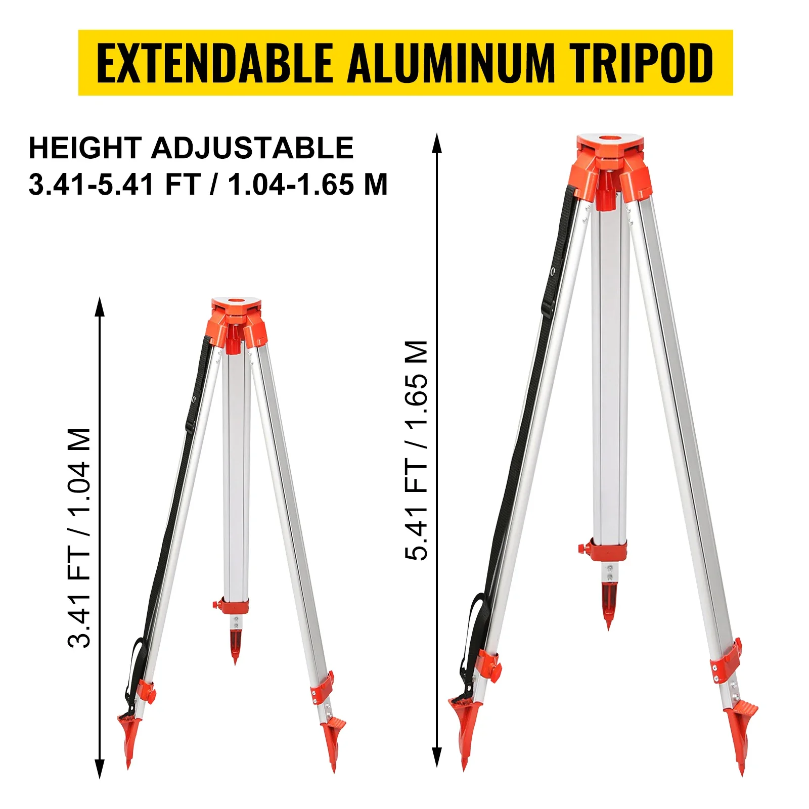 - 【РЕГУЛИРУЕМ И СТАБИЛЕН ТРАЙНОД】 – Височината на статива може да се регулира с три заключващи винта, достигайки 1,65 м, когато и трите крака са напълно изпънати. Три фиксирани крачета могат лесно да се вкарат в земята, за да се поддържа оборудването стабилно по време на работа.