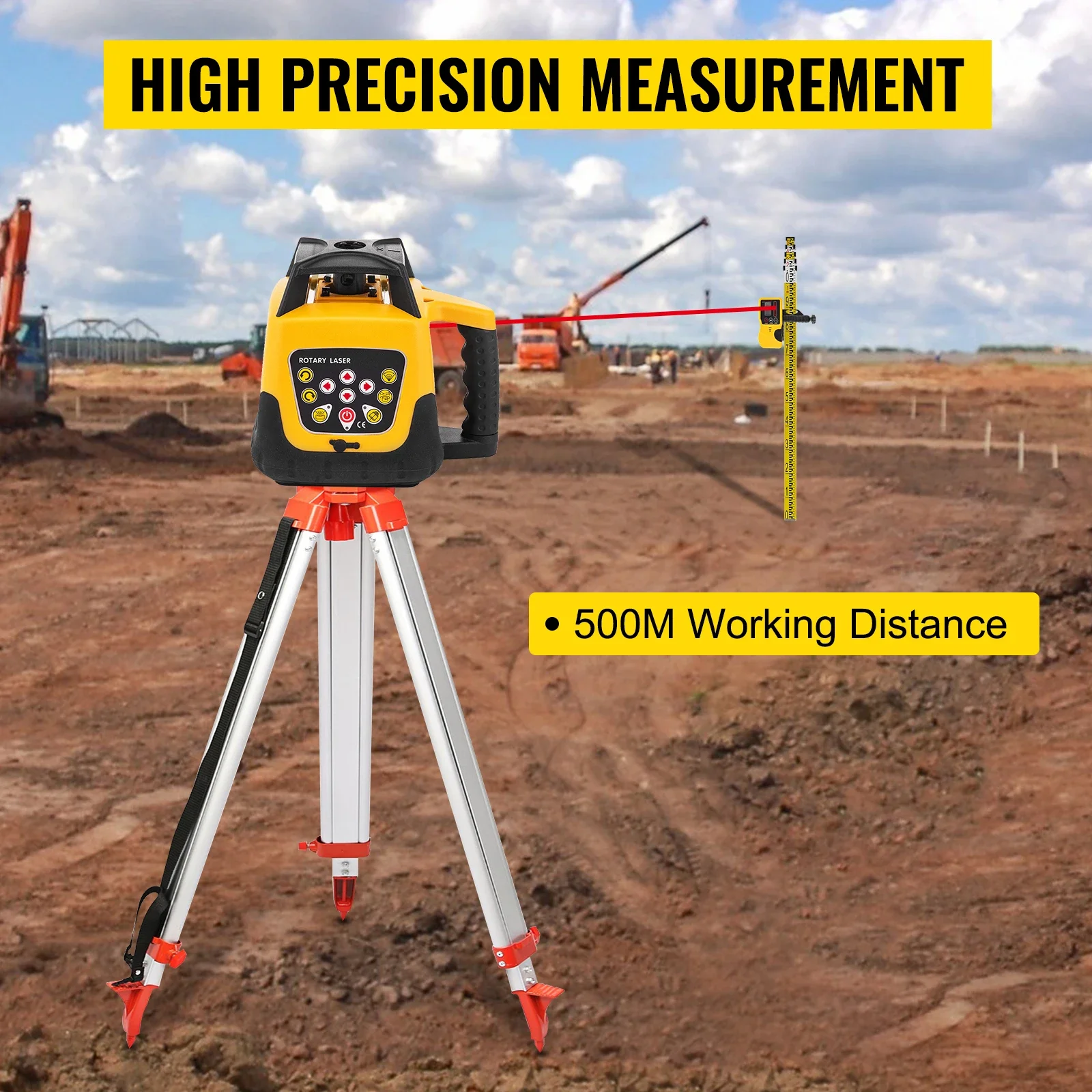 - 【ВИСОКОТОЧНО ИЗМЕРВАНЕ】 – Тази лазерна нивелирна система включва лазерен нивелир, статив и лата, което осигурява високо прецизно измерване и работен обхват от 500 м. Нашият лазерен нивелир е подходящ за вътрешна и външна употреба, идеален за маркиране, извършване на точни рамкови и фермени работи, дърводелство, стелажи и др.