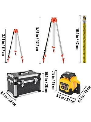 Ротационният нивелир достигна индустриално ниво и може да излъчва прецизен червен лъч за хоризонтално, вертикално и насочено сканиране. С работно разстояние от 500 м и въртящ се на 360 градуса дизайн, този ротационен лазерен нивелир създава стабилни линии на сканиране за максимална видимост при светлинни условия. Здравият, но лек алуминиев статив е с бързо освобождаваща се плоска глава за лесно монтиране и сигурно задържане на инструмента. Нашият ротационен самонивелиращ се лазер се използва широко в строителни проекти, монтаж на голямо оборудване, декориране на помещения и др.